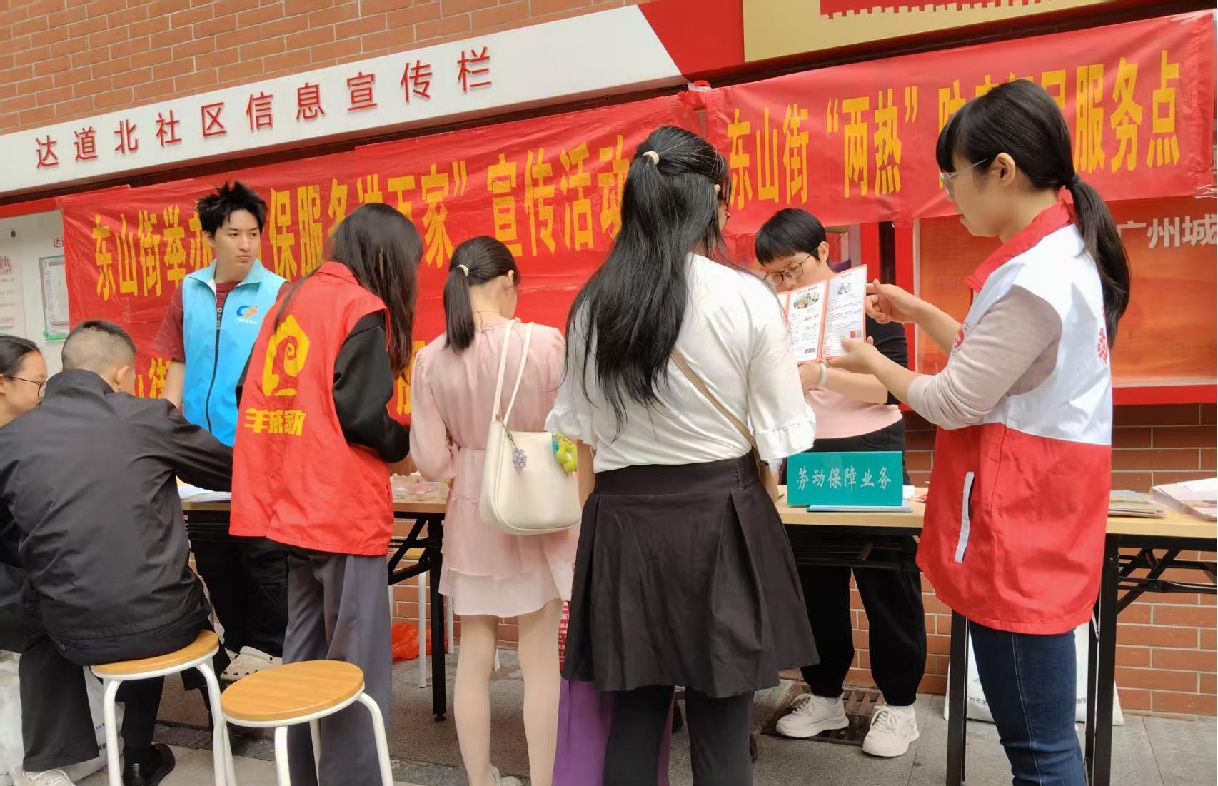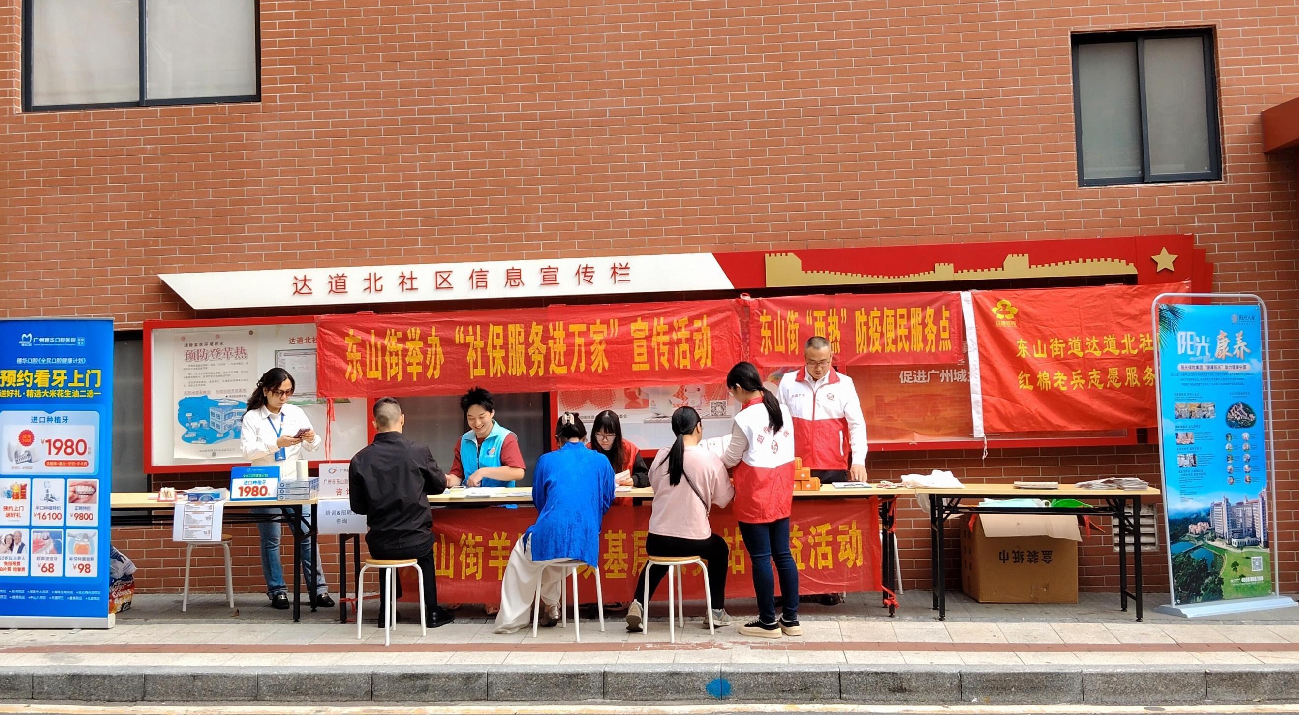 10月24日上午,东山街道德安社区联合东山街道党群服务中心、就业驿站、羊城家政基层服务站、残联等相关部门在龟岗大马路粤港大厦门前举办了一场“就业、社保进万家”为主题的公益宣传活动。活动旨在通过细致服务满足辖区居民对就业支持、政策咨询、健康生活及养老服务等多元化需求。